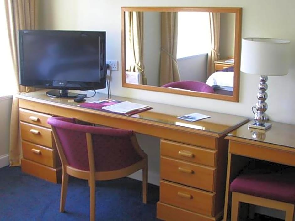This bright room comes with an en suite, TV and desk. Room will be set up as a double unless requested as a twin. Shower over bath/or wet room could be allocated. Requests for this will be subject to availability.